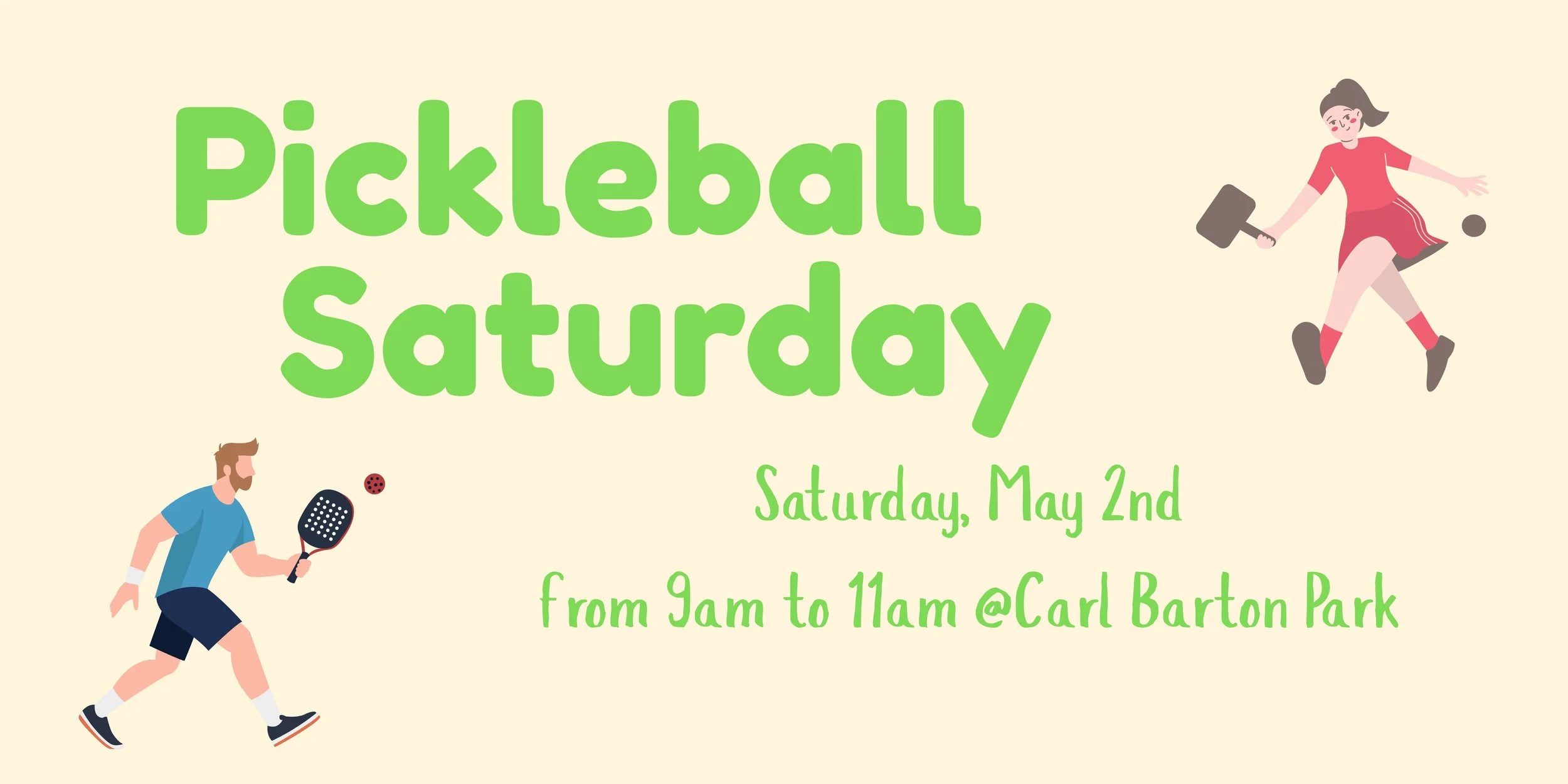 Join us this weekend, May 2nd, at Carl Barton Park for a morning of pickleball, community, and probably a few laughs as we chase that lime-green ball around.